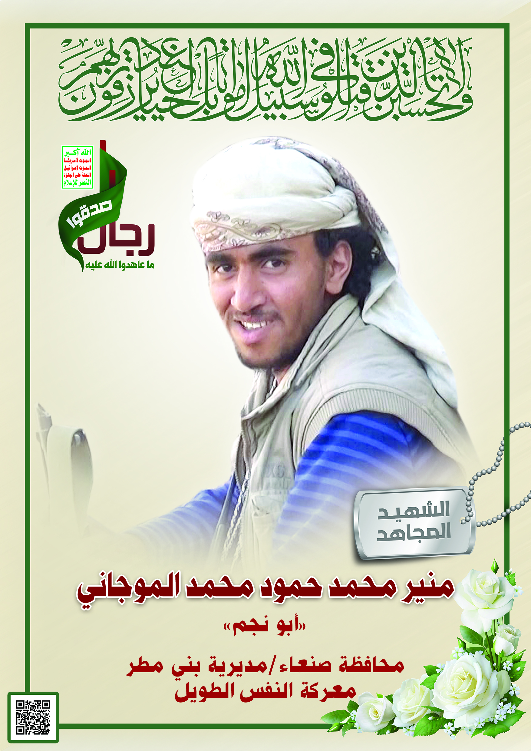 Actor منير محمد حمود محمد علي الموجاني Filmography الشهيد المجاهد: منير محمد حمود محمد علي الموجاني – أبو نجم المحافظة: صنعاء المديرية: بني مطر – معركة النفس الطويل رقم الحافظة: 131609