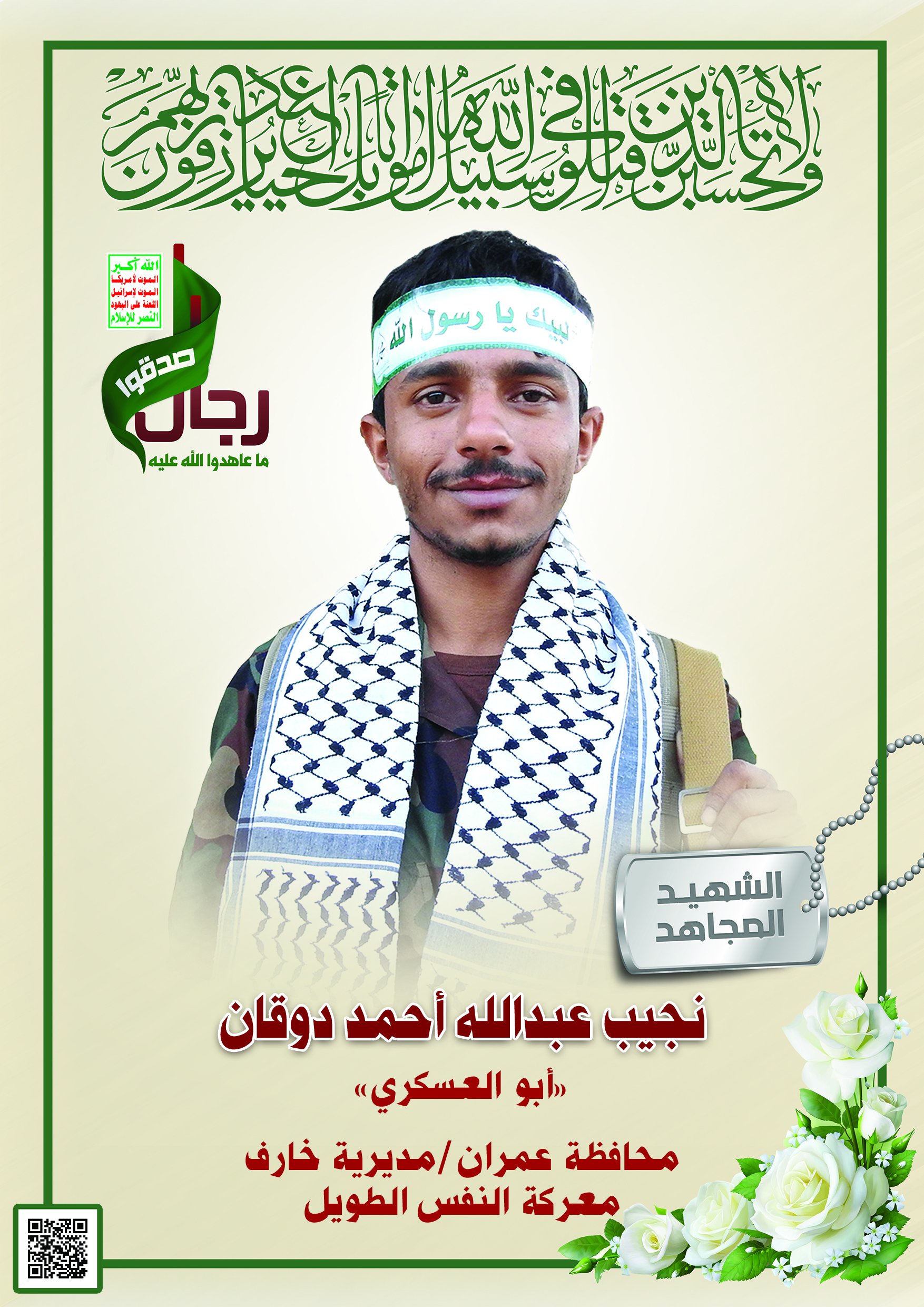 Actor نجيب عبدالله أحمد حزام صالح دوقان Filmography الشهيد المجاهد: نجيب عبدالله أحمد حزام صالح دوقان – أبو العسكري المحافظة: عمران المديرية: خارف – ال دوقان معركة النفس الطويل رقم الحافظة: 131785