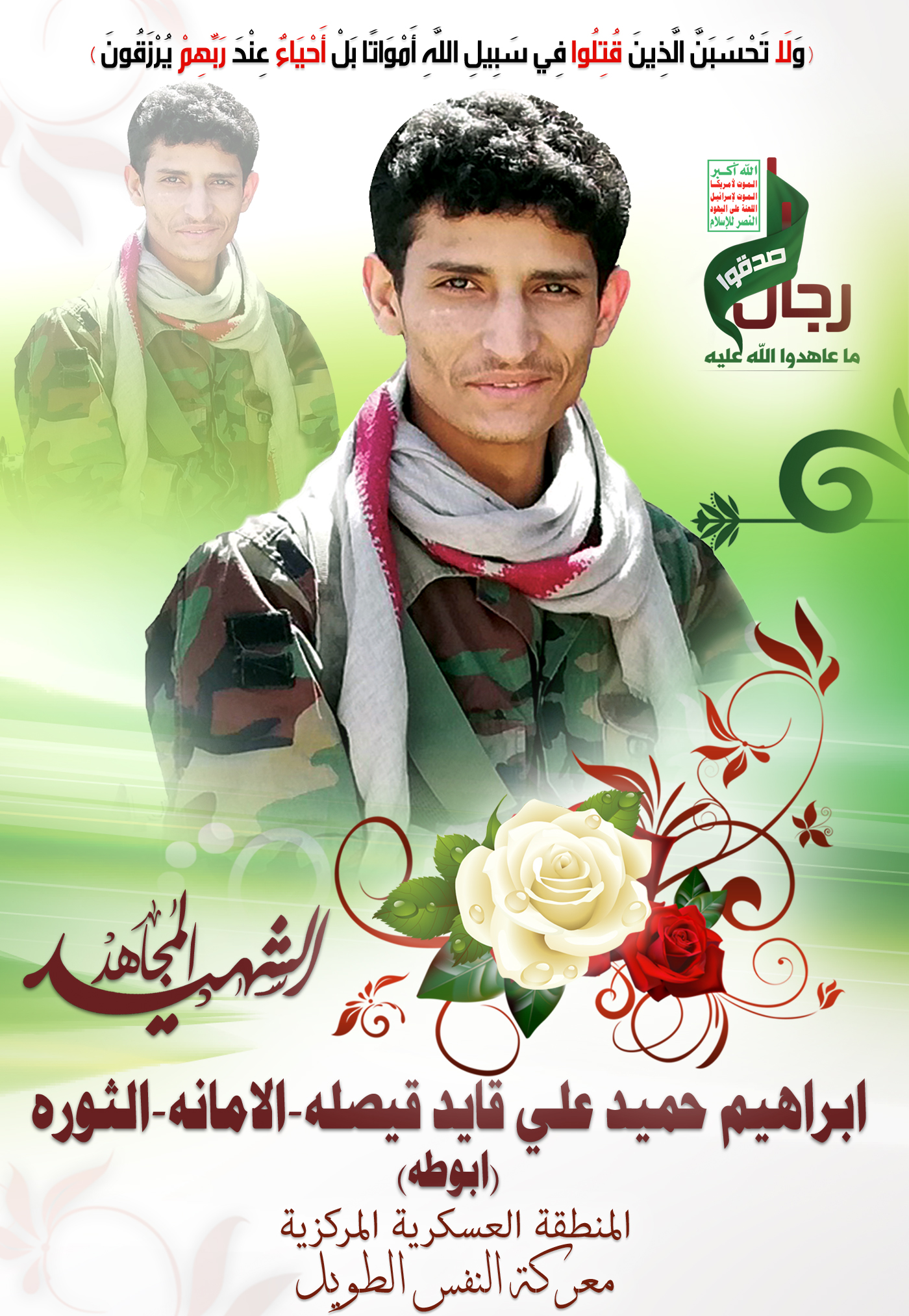 Actor إبراهيم حميد علي قائد رزق قصيله Filmography الشهيد المجاهد: إبراهيم حميد علي قائد رزق قصيله – أبو طه المحافظة: الأمانة المديرية: الثورة – معركة النفس الطويل رقم الحافظة: 131822