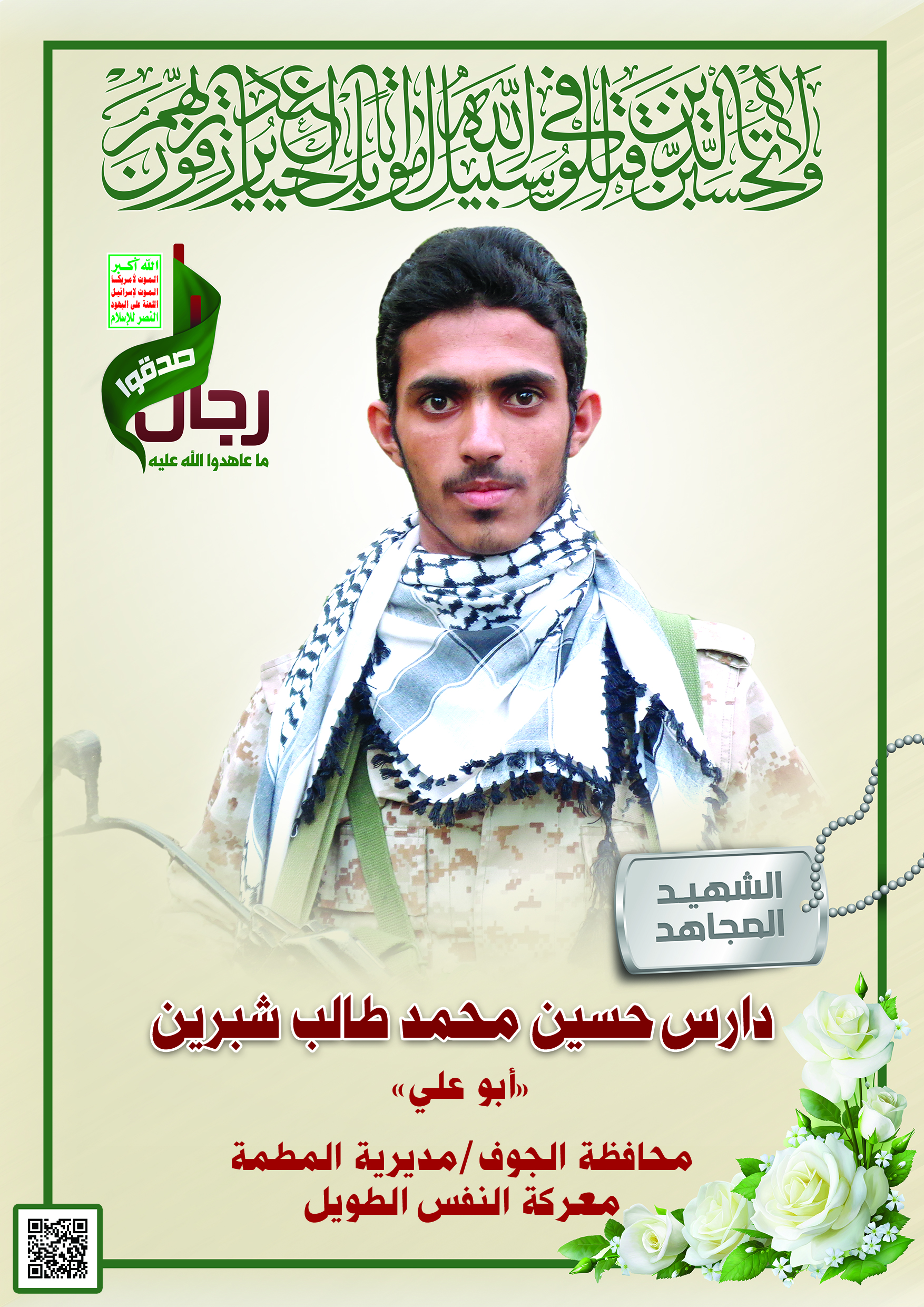 Actor دارس حسين محمد طالب شبرين Filmography الشهيد المجاهد: دارس حسين محمد طالب شبرين – أبو علي المحافظة: الجوف المديرية: المطمة – معركة النفس الطويل رقم الحافظة: 132313