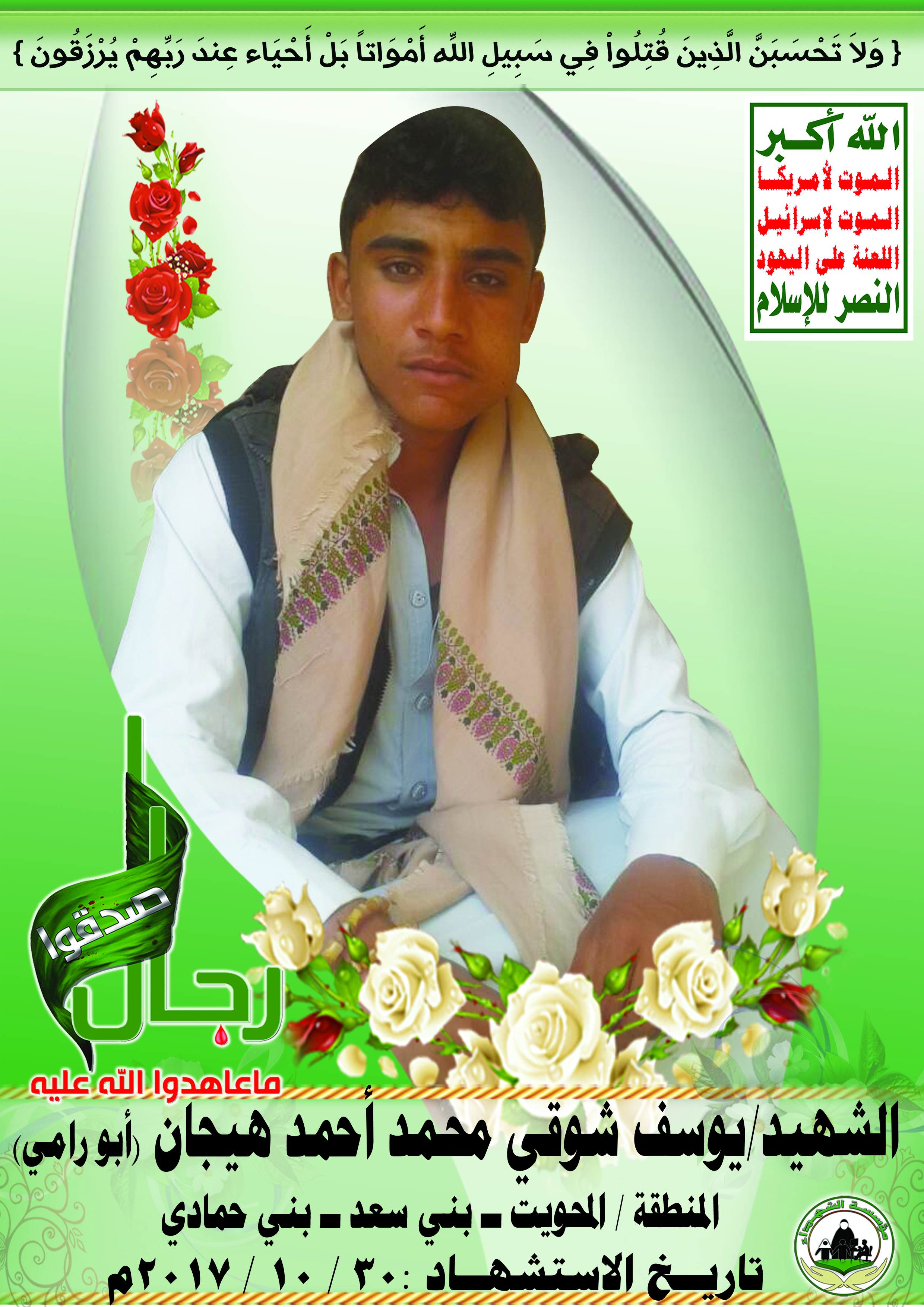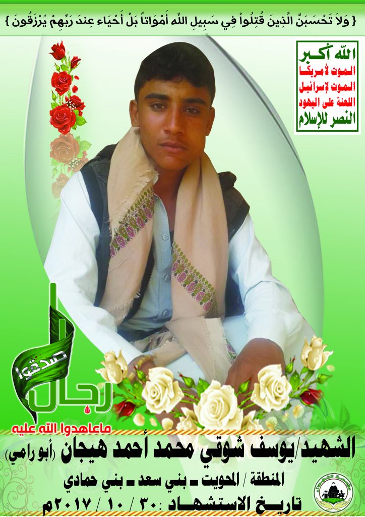 Actor يوسف شوقي محمد أحمد هيجان Filmography الشهيد المجاهد: يوسف شوقي محمد أحمد هيجان – أبو رامي المحافظة: المحويت المديرية: بني سعد – بني الحمادي معركة النفس الطويل رقم الحافظة: 133086