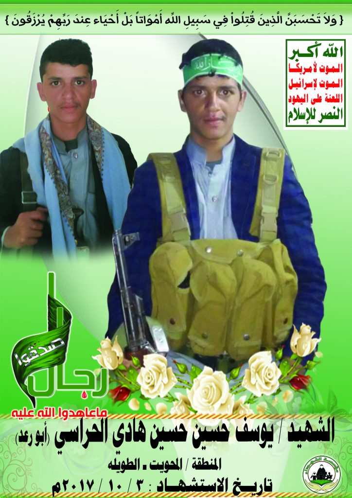Actor يوسف حسين حسين هادي الحراسي Filmography الشهيد المجاهد: يوسف حسين حسين هادي الحراسي – أبو رعد المحافظة: المحويت المديرية: الطويلة – معركة النفس الطويل رقم الحافظة: 133088