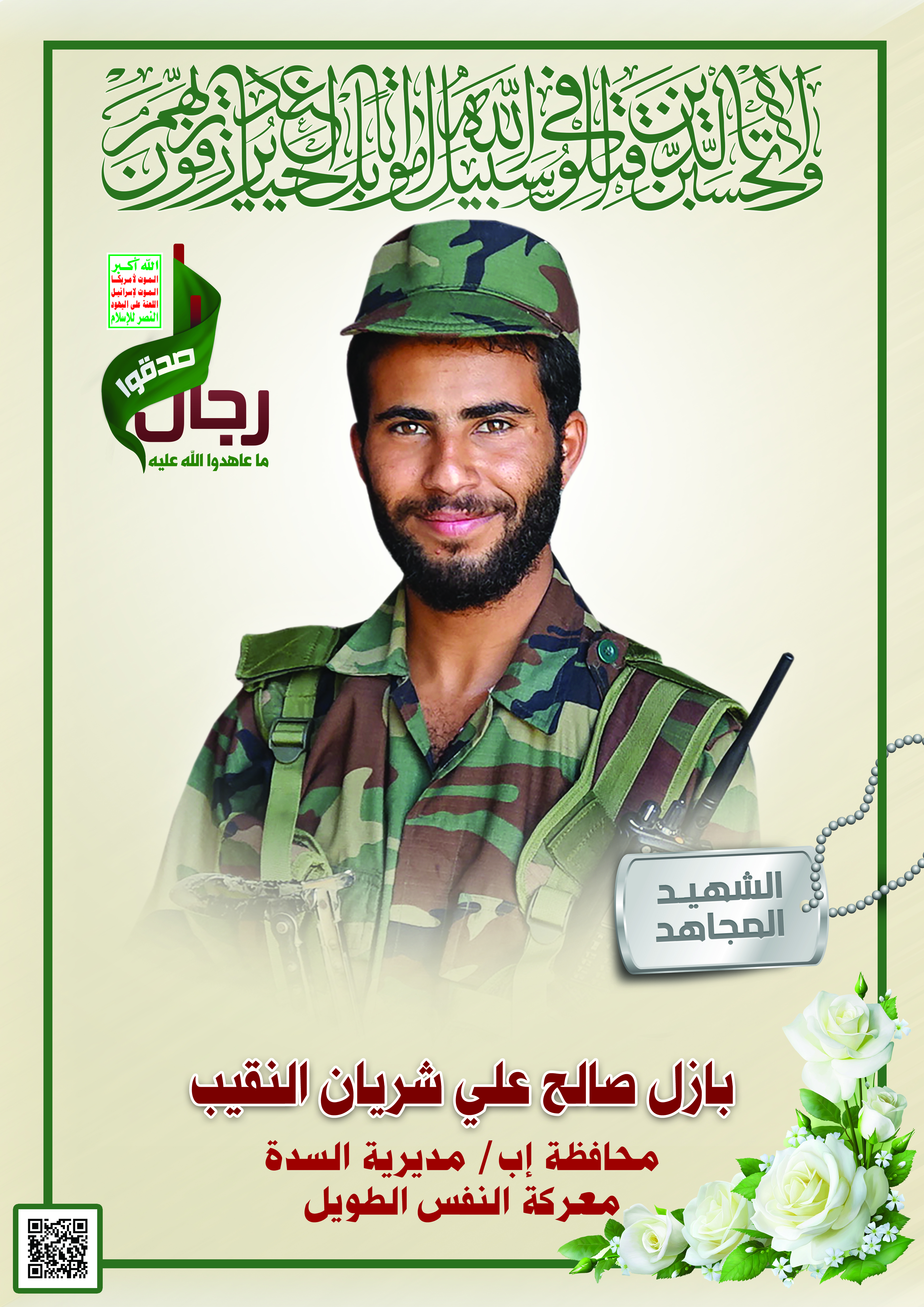 Actor بازل صالح علي شريان أحمد النقيب Filmography الشهيد المجاهد: بازل صالح علي شريان أحمد النقيب – أبو صالح المحافظة: إب المديرية: السدة – معركة النفس الطويل رقم الحافظة: 133178