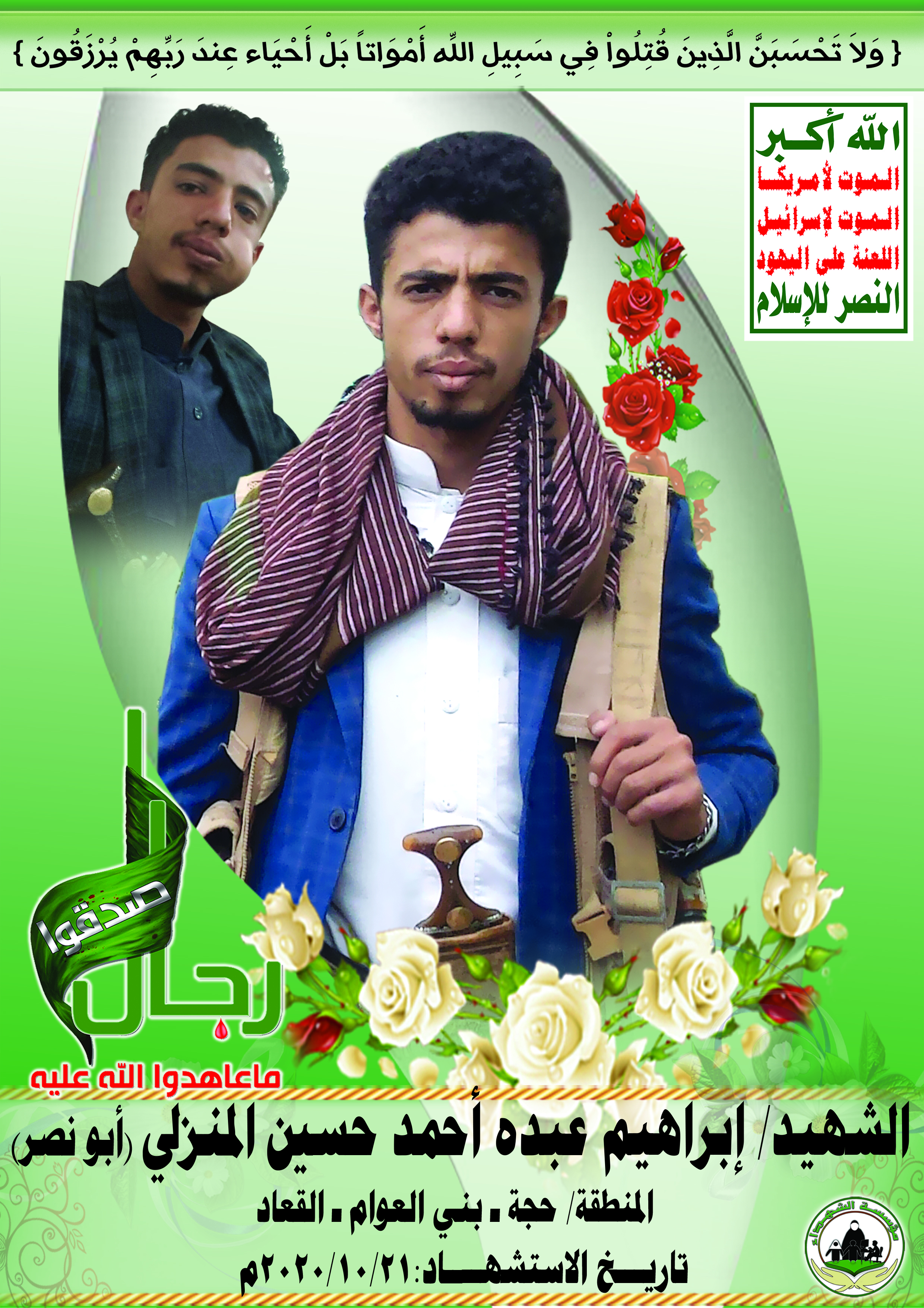 Actor إبراهيم عبده أحمد حسين حسين المنزلي Filmography الشهيد المجاهد: إبراهيم عبده أحمد حسين حسين المنزلي – أبو نصر المحافظة: حجة المديرية: بني العوام – معركة النفس الطويل رقم الحافظة: 134043