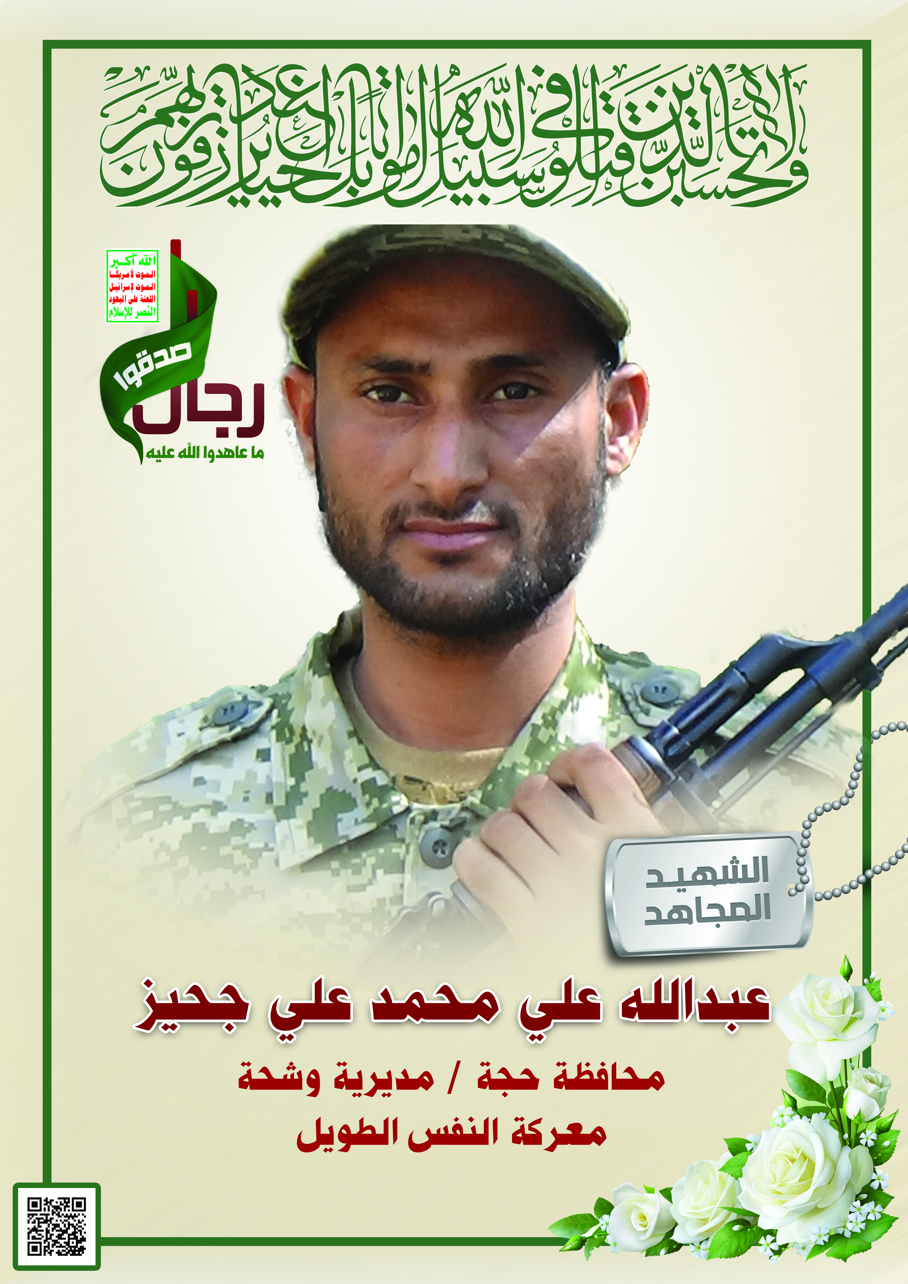 Actor عبدالله علي محمد علي جبران جحيز Filmography الشهيد المجاهد: عبدالله علي محمد علي جبران جحيز – المحافظة: حجة المديرية: وشحة شقوق – معركة النفس الطويل رقم الحافظة: 134656