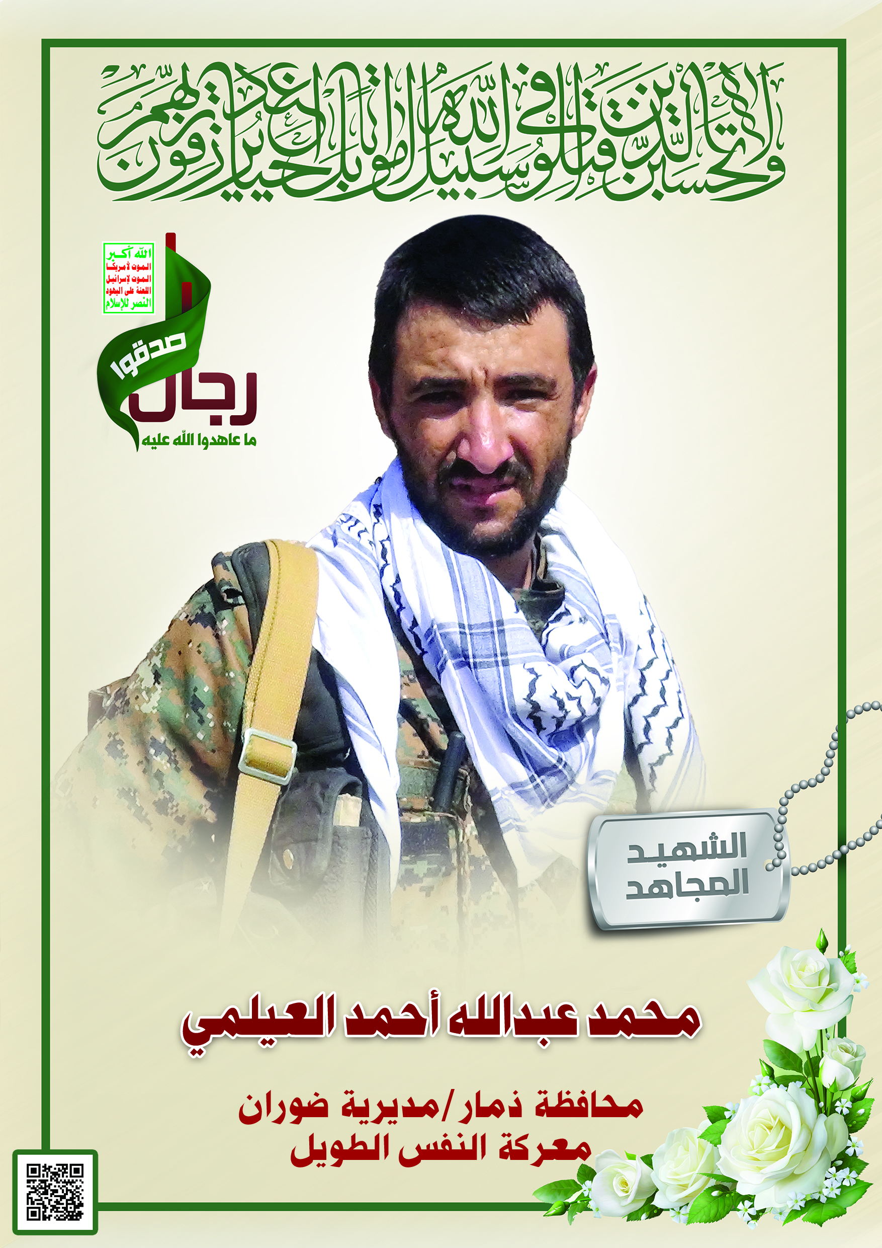 Actor محمد عبدالله أحمد علي صالح العيلمي Filmography الشهيد المجاهد: محمد عبدالله أحمد علي صالح العيلمي – المحافظة: ذمار المديرية: ضوران – العر معركة النفس الطويل رقم الحافظة: 136142