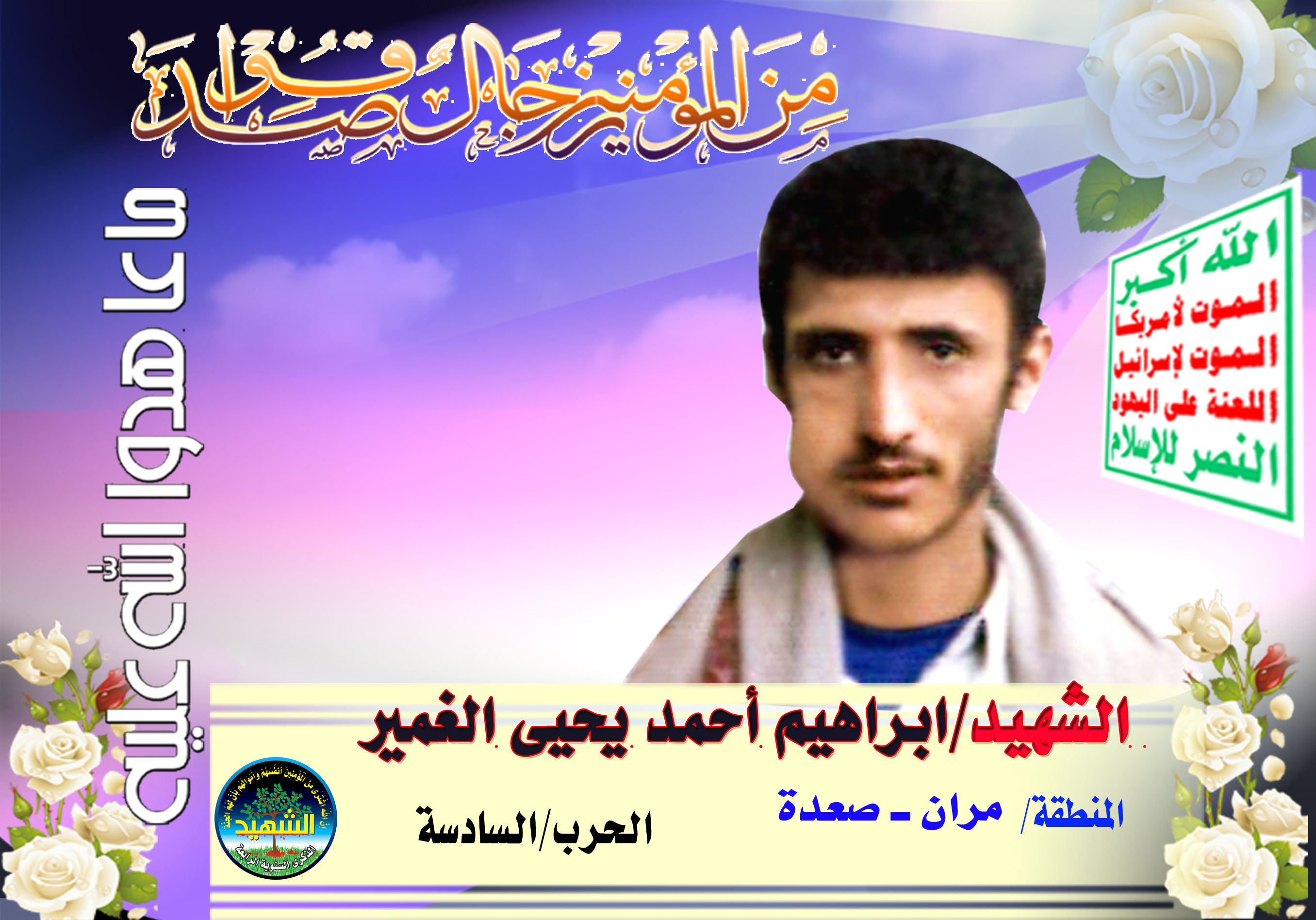 Actor إبراهيم أحمد يحيى علي ظافر الغمير Filmography الشهيد المجاهد: إبراهيم أحمد يحيى علي ظافر الغمير – أبو خليل المحافظة: صعدة المديرية: حيدان – مران معركة النفس الطويل رقم الحافظة: 136445