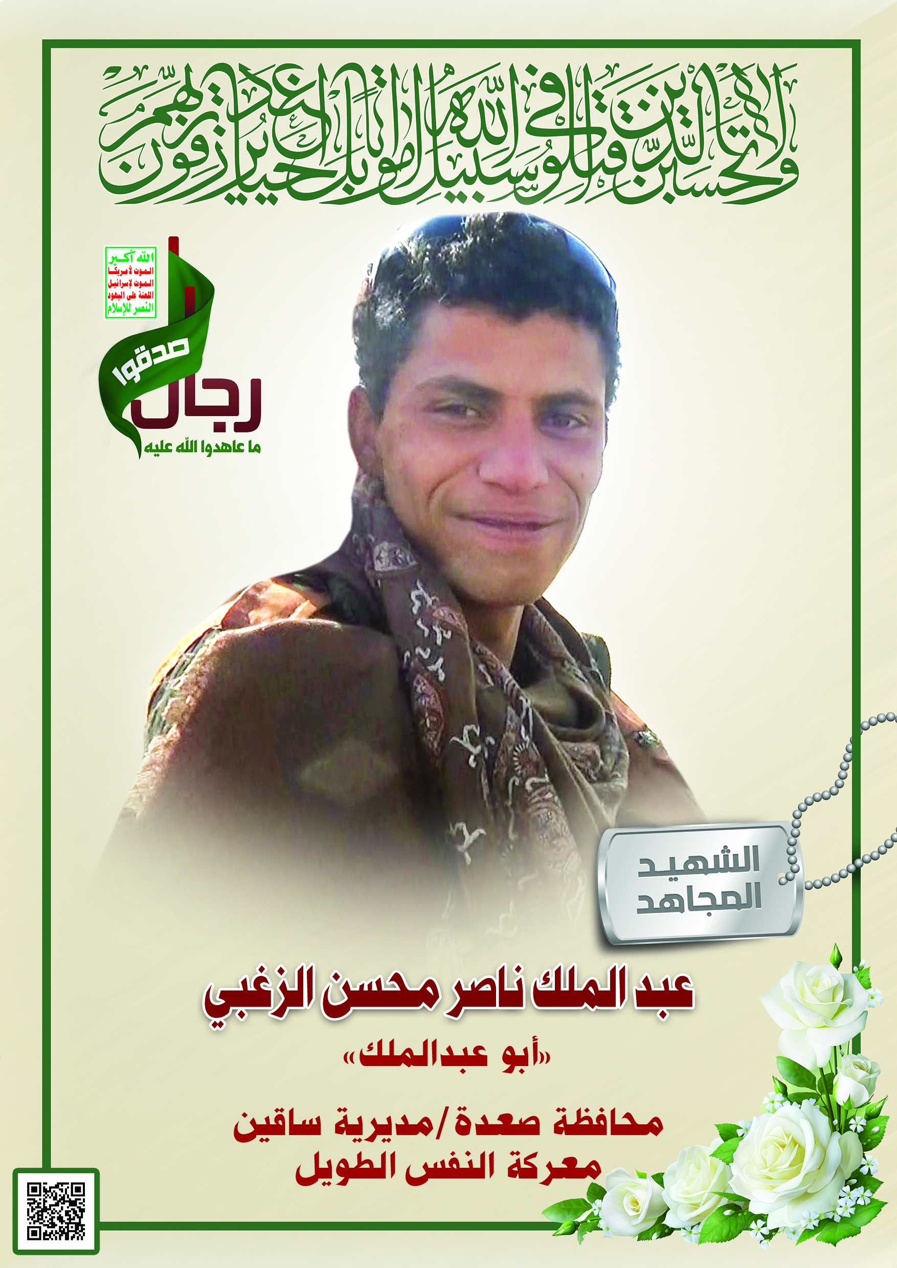 Actor عبدالملك ناصر محسن سعد علي عبدالله الزغبي Filmography الشهيد المجاهد: عبدالملك ناصر محسن الزغبي – أبو عبدالملك المحافظة: صعدة المديرية: ساقين – معركة النفس الطويل رقم الحافظة: 136950