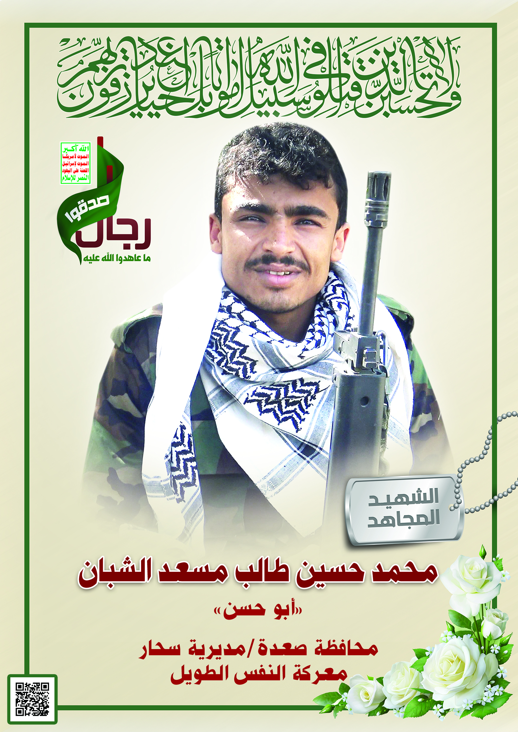 Actor محمد حسين طالب مسعد يحيى الشبان Filmography الشهيد المجاهد: محمد حسين طالب مسعد يحيى الشبان – أبو حسن المحافظة: صعدة المديرية: سحار – بني معاذ معركة النفس الطويل رقم الحافظة: 137097