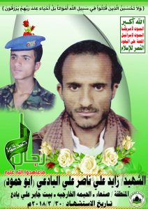 Actor زايد علي ناصر علي اليادعي Filmography الشهيد المجاهد: زايد علي ناصر علي اليادعي – أبو حمود المحافظة: صنعاء المديرية: الحيمة الخارجية – معركة النفس الطويل رقم الحافظة: 137659