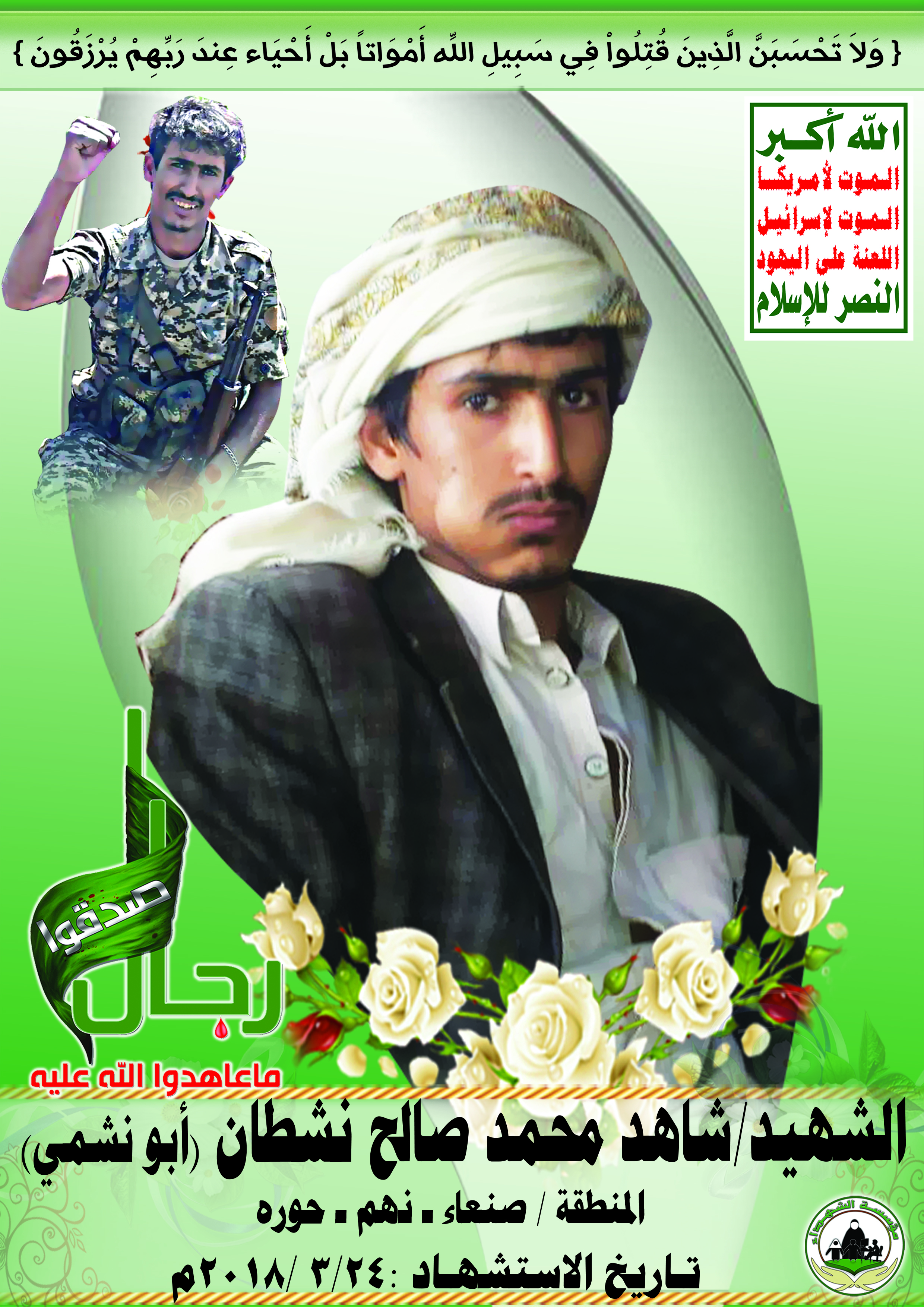 Actor شاهد محمد صالح علي نشطان نشطان Filmography الشهيد المجاهد: شاهد محمد صالح علي نشطان نشطان – أبو نشمي المحافظة: صنعاء المديرية: نهم – حورة معركة النفس الطويل رقم الحافظة: 137721