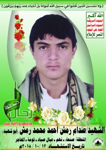 Actor صدام رمش أحمد محمد رمش Filmography الشهيد المجاهد: صدام رمش أحمد محمد رمش – المحافظة: صنعاء المديرية: نهم – ثومة معركة النفس الطويل رقم الحافظة: 137790