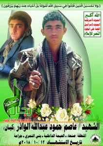 Actor عاصم حمود عبدالله حسين حسين الواذر Filmography الشهيد المجاهد: عاصم حمود عبدالله حسين حسين الواذر – أبو كيان المحافظة: صنعاء المديرية: الحيمة الداخلية – بني النمري معركة النفس الطويل رقم الحافظة: 137840