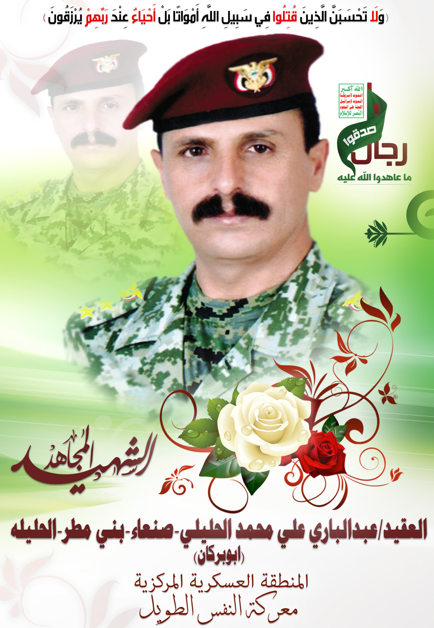 Actor عبدالباري علي محمد محمد أحمد الحليلي Filmography الشهيد المجاهد: عبدالباري علي محمد محمد أحمد الحليلي – أبو بركان المحافظة: صنعاء المديرية: بني مطر – الحليلة معركة النفس الطويل رقم الحافظة: 137856