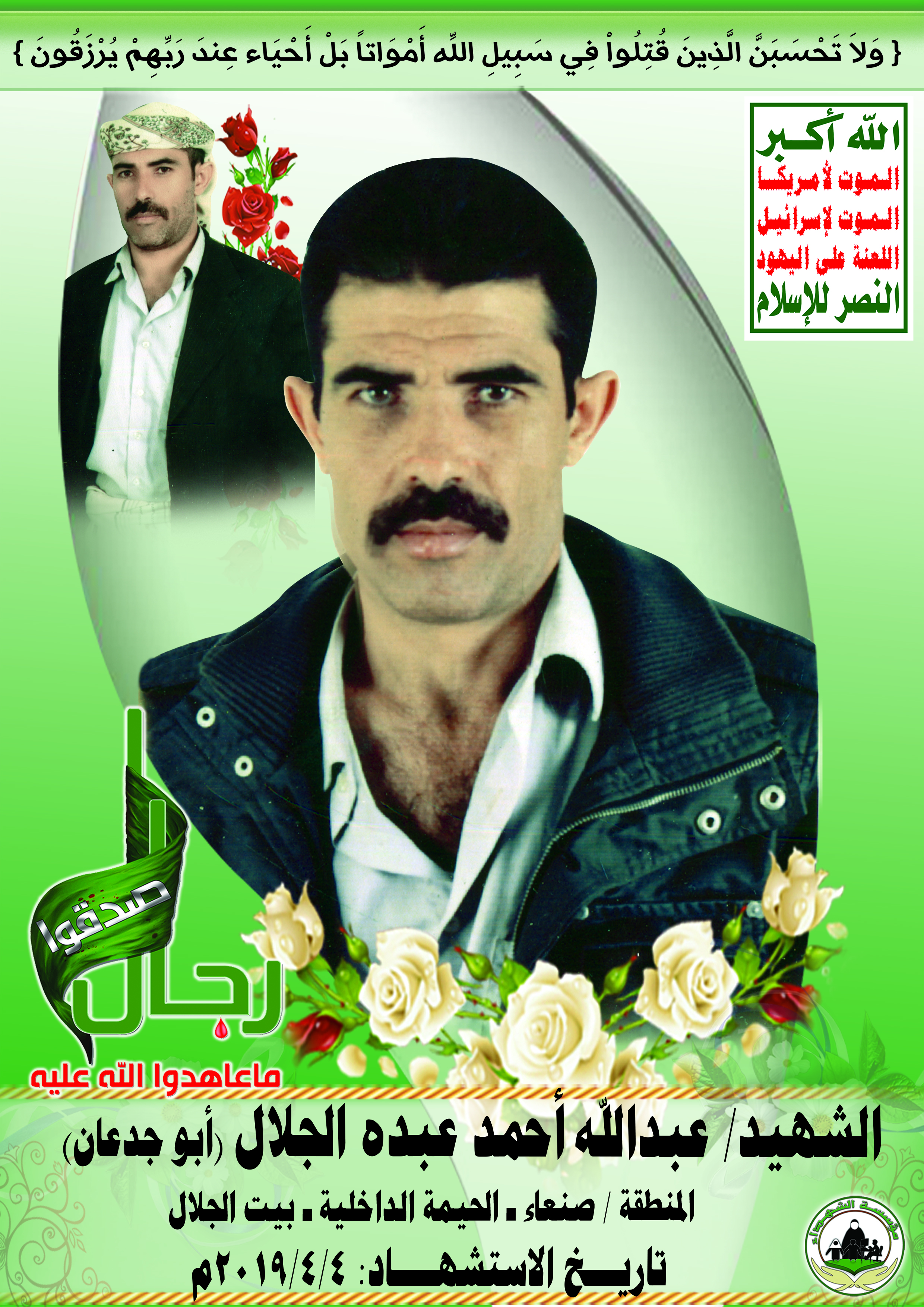 Actor عبدالله أحمد عبده محمد هادي الجلال Filmography الشهيد المجاهد: عبدالله أحمد عبده محمد هادي الجلال – أبو جدعان المحافظة: صنعاء المديرية: الحيمة الداخلية – معركة النفس الطويل رقم الحافظة: 137910