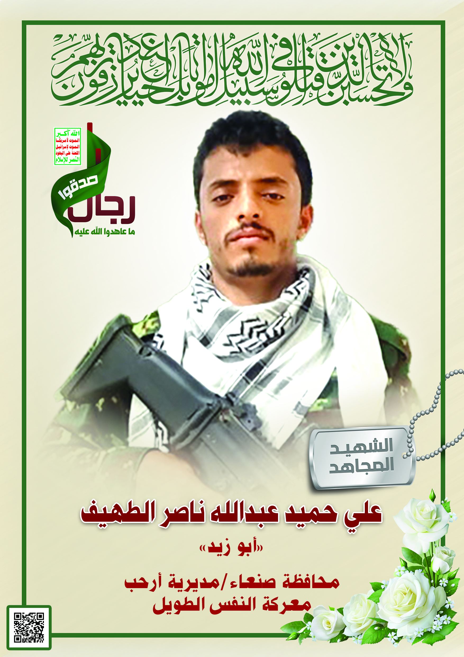 Actor علي حميد عبدالله عبدالله ناصر الطهيف Filmography الشهيد المجاهد: علي حميد عبدالله عبدالله ناصر الطهيف – أبو زيد المحافظة: صنعاء المديرية: أرحب – الثلث معركة النفس الطويل رقم الحافظة: 138023