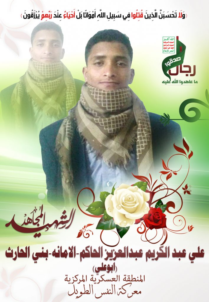 Actor علي عبدالكريم عبدالعزيز محمد الحاكم الحاكم Filmography الشهيد المجاهد: علي عبدالكريم عبدالعزيز محمد الحاكم الحاكم – أبو علي المحافظة: صنعاء المديرية: بني الحارث – معركة النفس الطويل رقم الحافظة: 138035