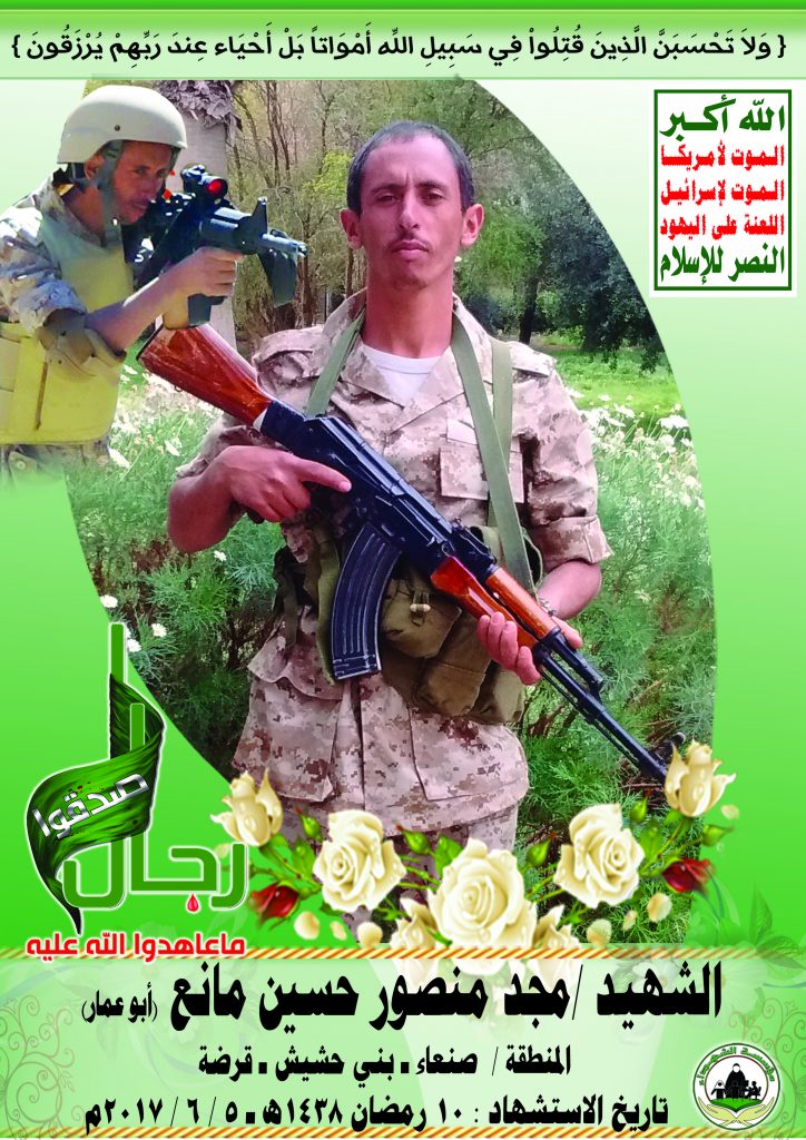 Actor مجد منصور حسين أحسن مانع Filmography الشهيد المجاهد: مجد منصور حسين أحسن مانع – أبو عمار المحافظة: صنعاء المديرية: بني حشيش – قرضه معركة النفس الطويل رقم الحافظة: 138197
