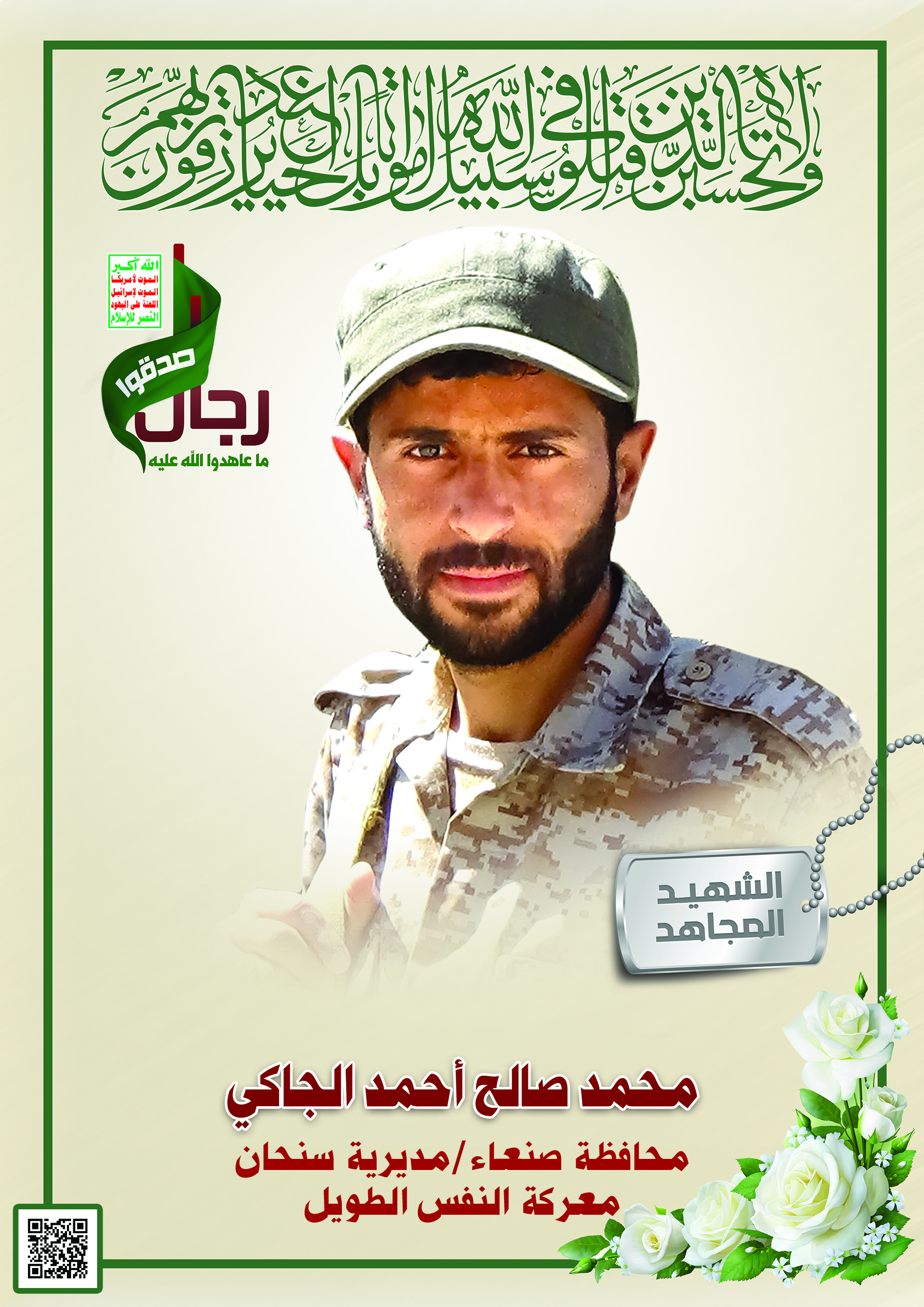 Actor محمد صالح أحمد صالح أحمد الجاكي Filmography الشهيد المجاهد: محمد صالح أحمد صالح أحمد الجاكي – المحافظة: صنعاء المديرية: سنحان – وادي الاجبار معركة النفس الطويل رقم الحافظة: 138235