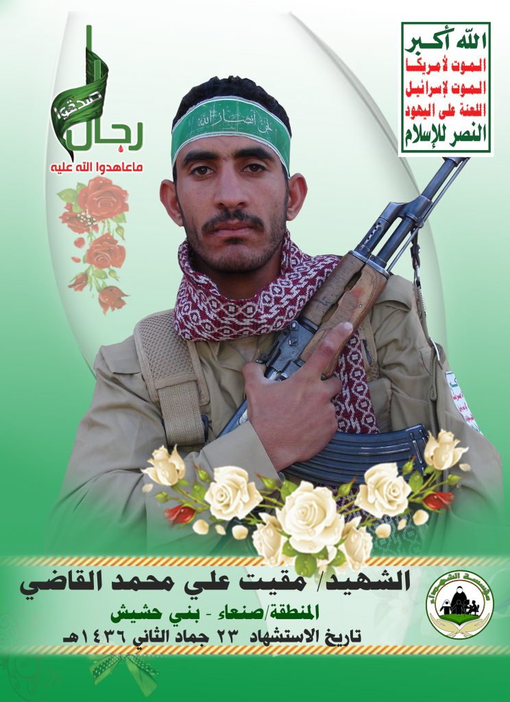 Actor مقيت علي محمد صالح القاضي Filmography الشهيد المجاهد: مقيت علي محمد صالح القاضي – المحافظة: صنعاء المديرية: بني حشيش – رجام معركة النفس الطويل رقم الحافظة: 138351