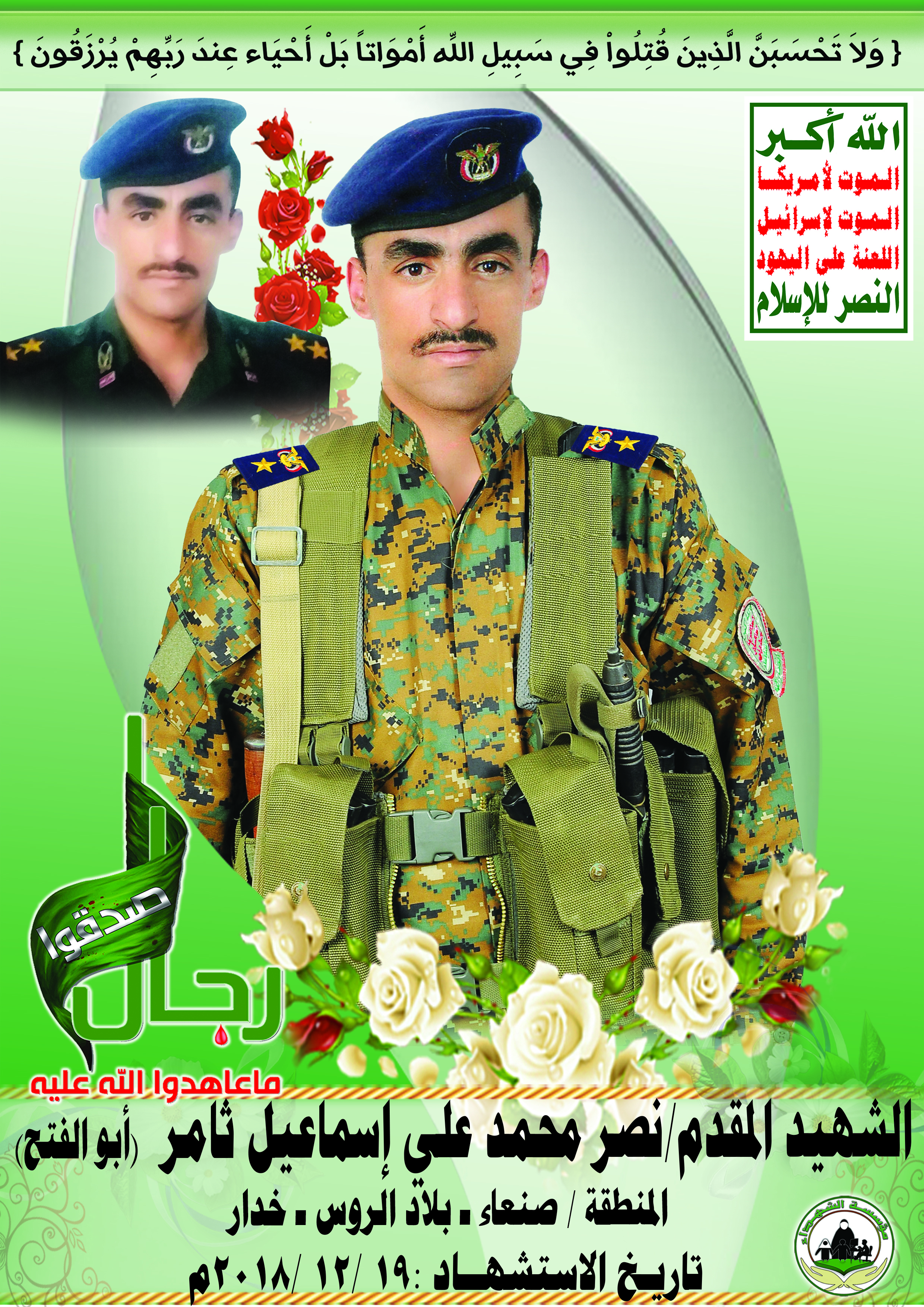 Actor نصر محمد علي إسماعيل ثامر Filmography الشهيد المجاهد: نصر محمد علي إسماعيل ثامر – المحافظة: صنعاء المديرية: بلاد الروس – معركة النفس الطويل رقم الحافظة: 138401