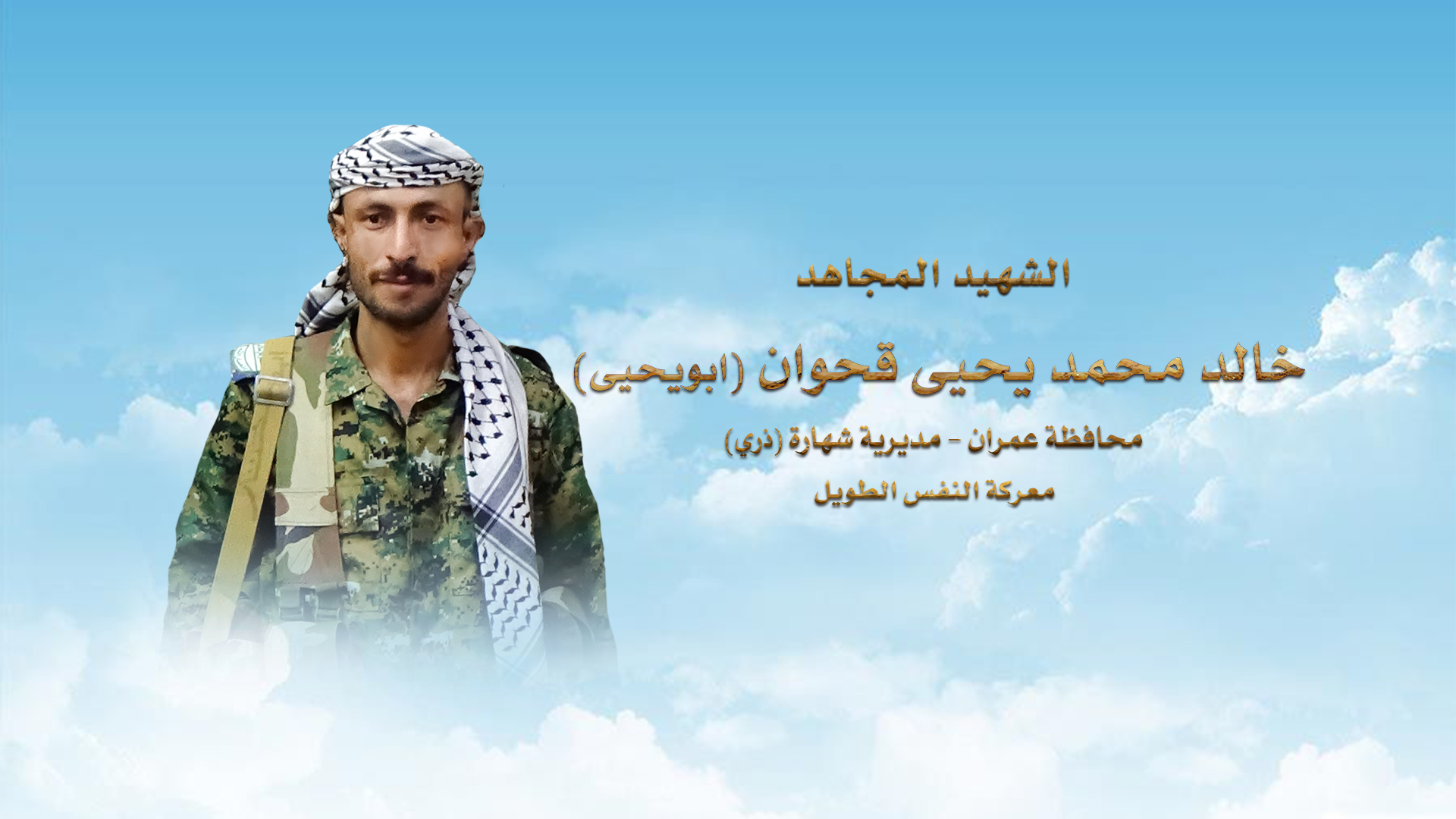 Actor خالد محمد يحيى هادي محمد قحوان Filmography الشهيد المجاهد: خالد محمد يحيى هادي محمد قحوان – المحافظة: عمران المديرية: شهارة – ذري معركة النفس الطويل رقم الحافظة: 138721
