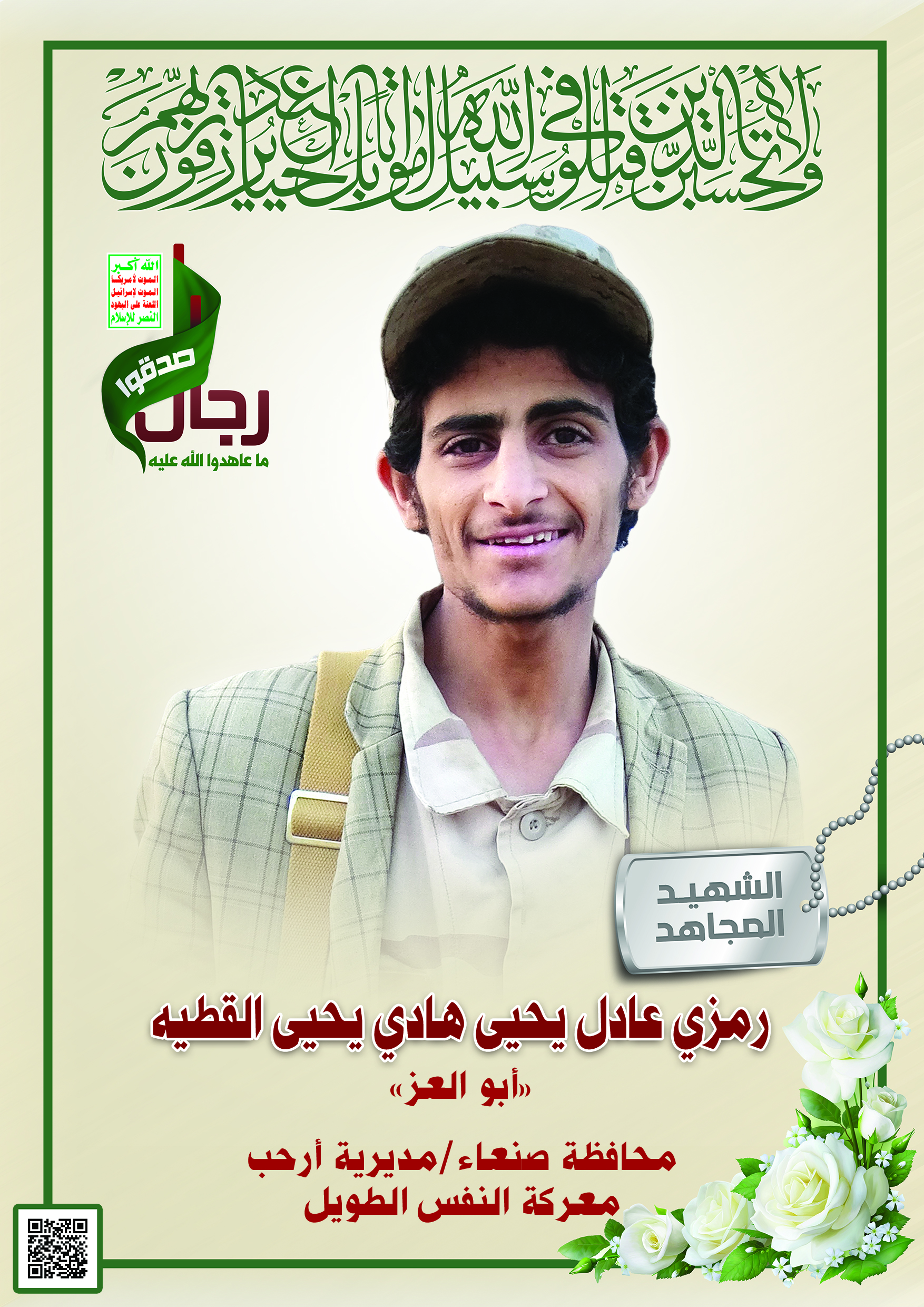 Actor رمزي عادل يحيى هادي يحيى القطيه Filmography الشهيد المجاهد: رمزي عادل يحيى هادي يحيى القطيه المحافظة: صنعاء المديرية: أرحب – ثلث معركة النفس الطويل رقم الحافظة: 139409