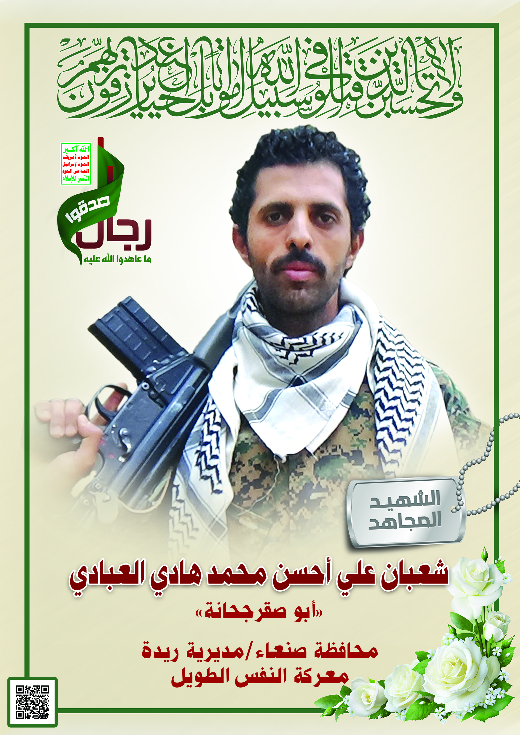 Actor شعبان علي احسن محمد هادي العبادي Filmography الشهيد المجاهد: شعبان علي احسن محمد هادي العبادي المحافظة: صنعاء المديرية: جحانه – جحانه جحانه معركة النفس الطويل رقم الحافظة: 139445