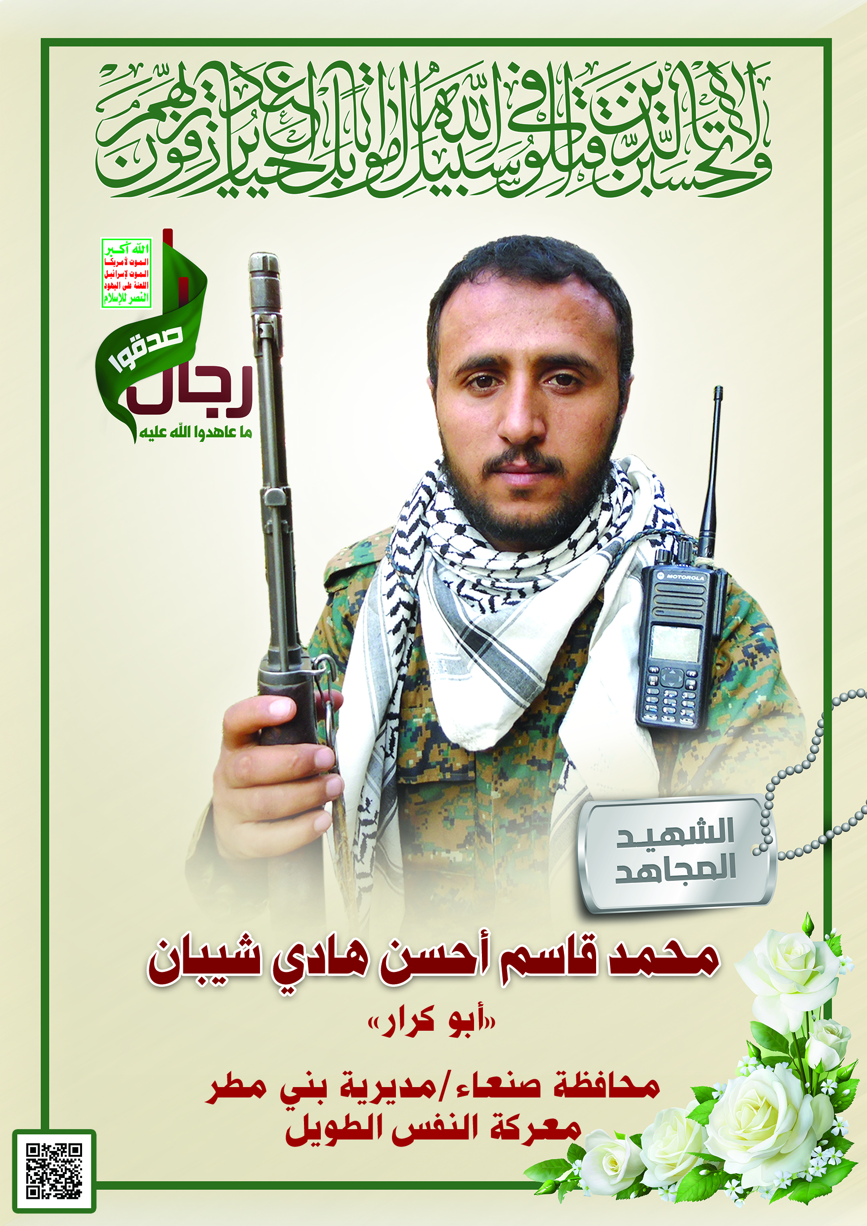 Actor محمد قاسم احسن هادي قاسم شيبان Filmography SONY DSC الشهيد المجاهد: محمد قاسم احسن هادي قاسم شيبان المحافظة: صنعاء المديرية: بني مطر – شعب اسفل بيت ردم معركة النفس الطويل رقم الحافظة: 139797