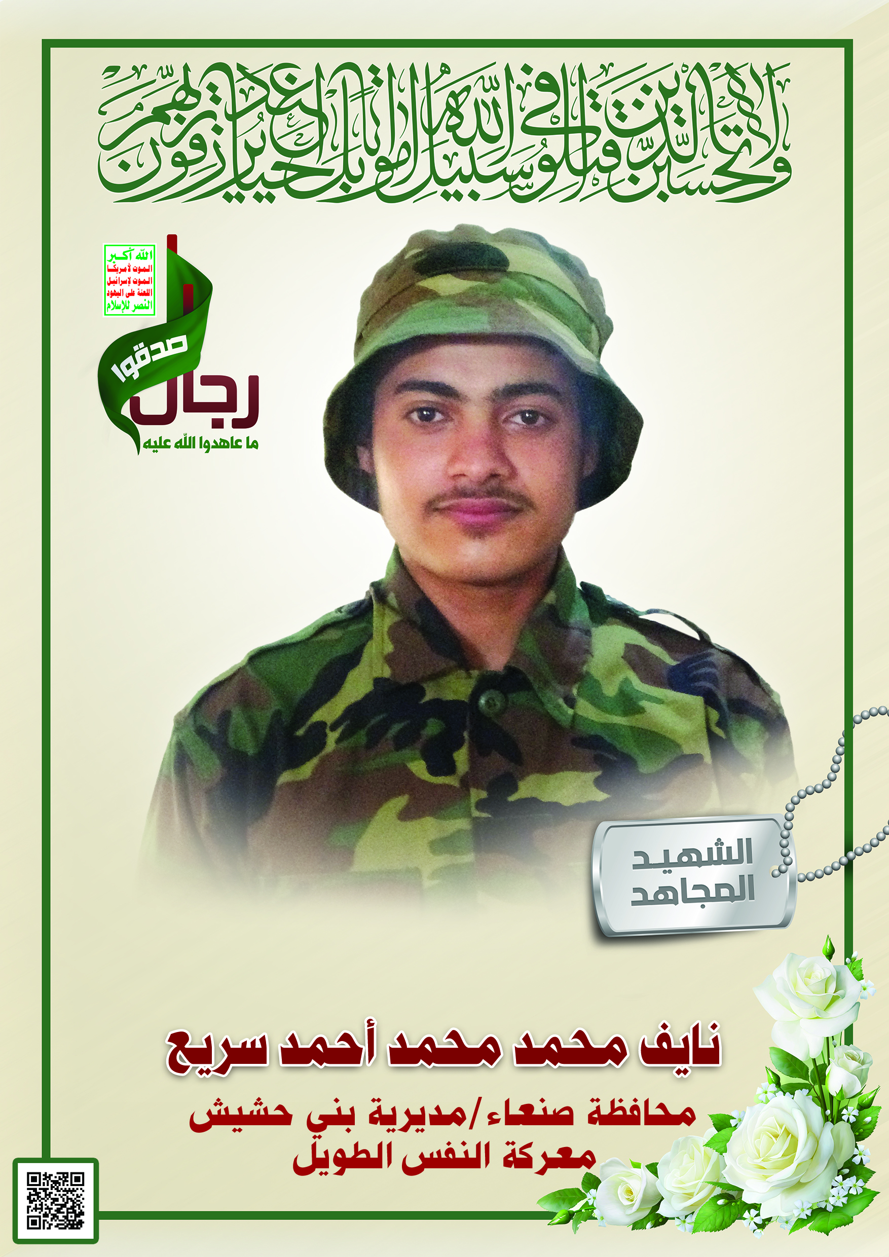 Actor نايف محمد محمد أحمد سريع Filmography الشهيد المجاهد: نايف محمد محمد أحمد سريع المحافظة: صنعاء المديرية: بني حشيش – الرونه الحصن معركة النفس الطويل رقم الحافظة: 139852