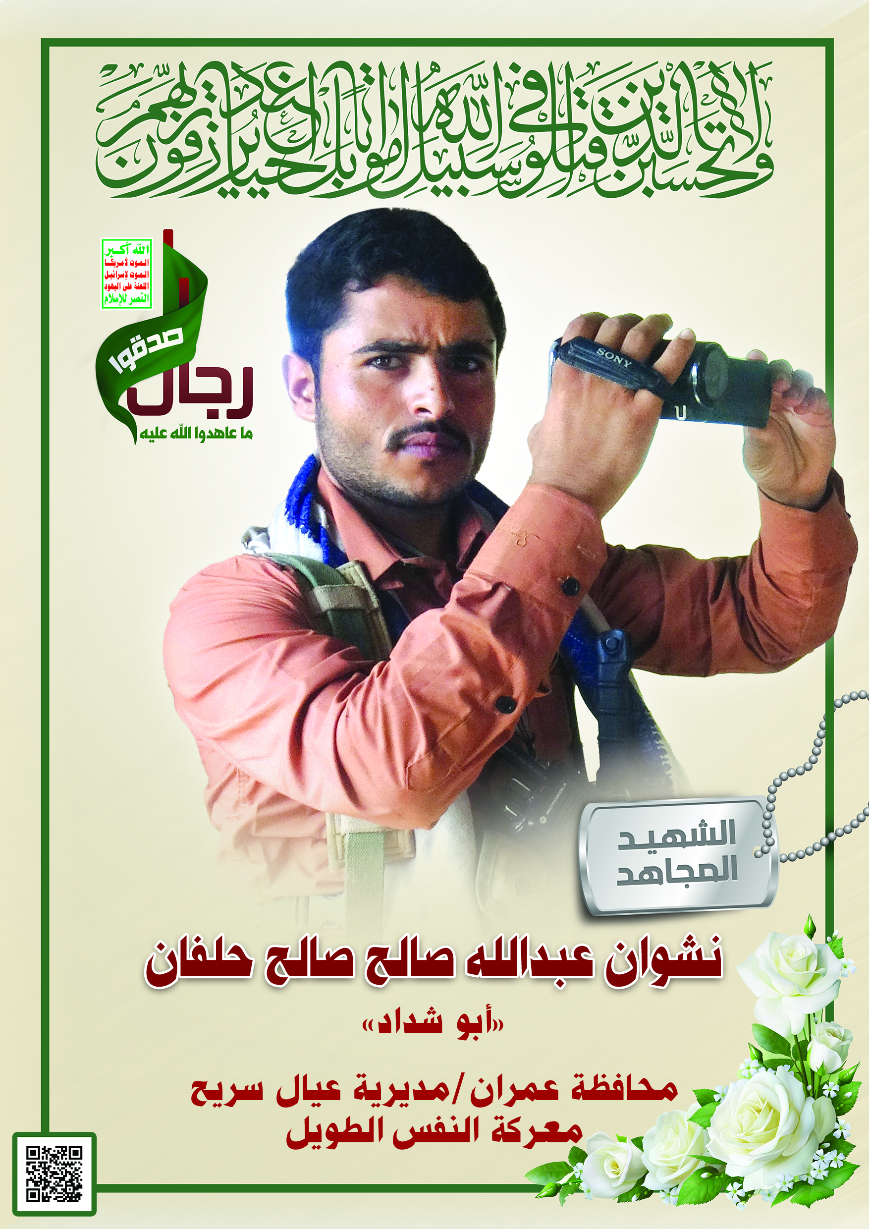 Actor نشوان عبدالله صالح صالح أحمد حلفان Filmography الشهيد المجاهد: نشوان عبدالله صالح صالح أحمد حلفان المحافظة: بيت عسكر المديرية: بني عبد – عيال سريح عمران معركة النفس الطويل رقم الحافظة: 139863
