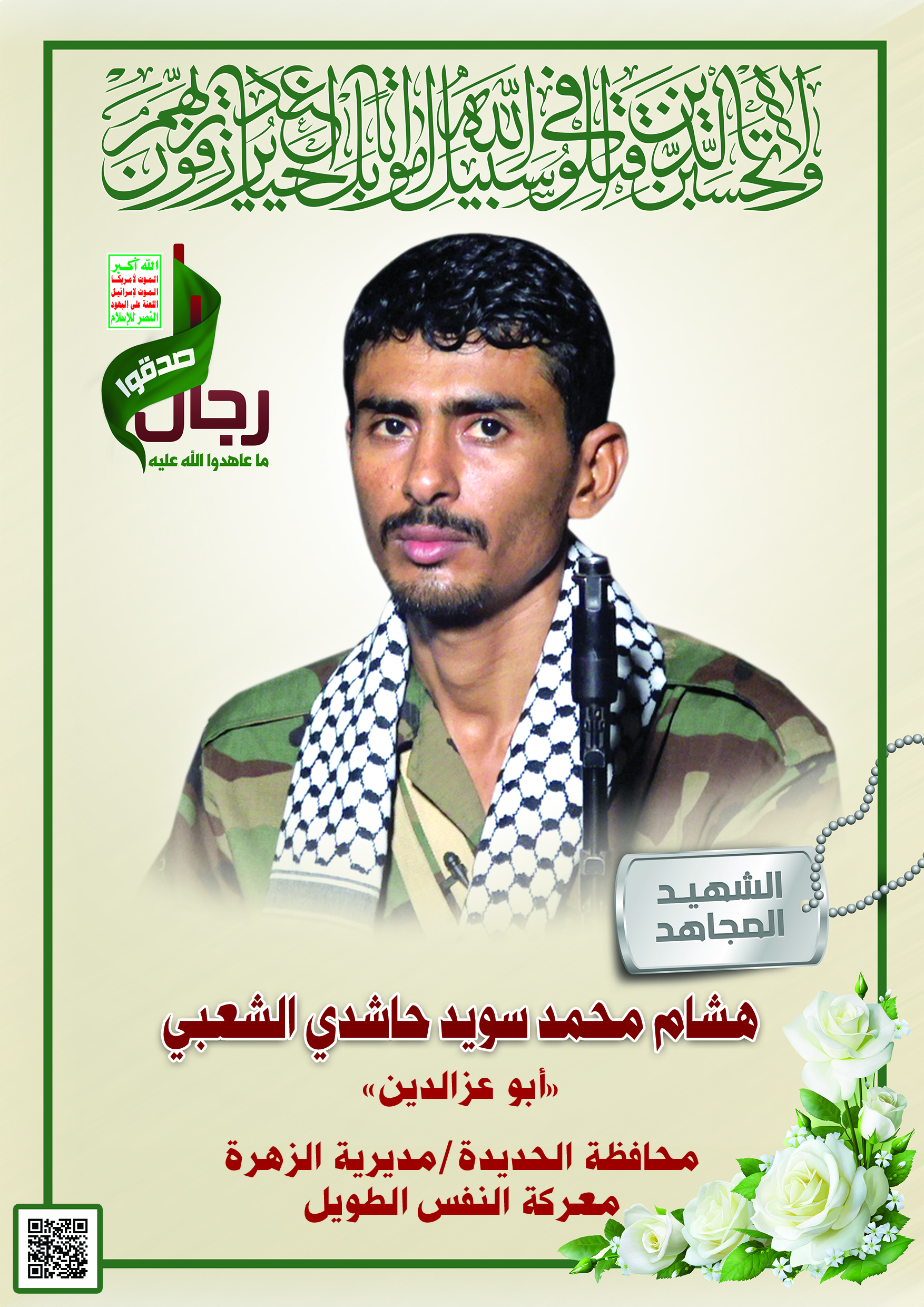 Actor هشام محمد سويد حاشدي الشعبي Filmography الشهيد المجاهد: هشام محمد سويد حاشدي الشعبي المحافظة: الحديدة المديرية: الزهرة – الشعابيه دير الجلي معركة النفس الطويل رقم الحافظة: 139885 FILMOGRAPHY icon وصايا الخالدين || الشهيد/ هشام محمد سويد الشعبي (أبو عزالدين) 20/11/2022