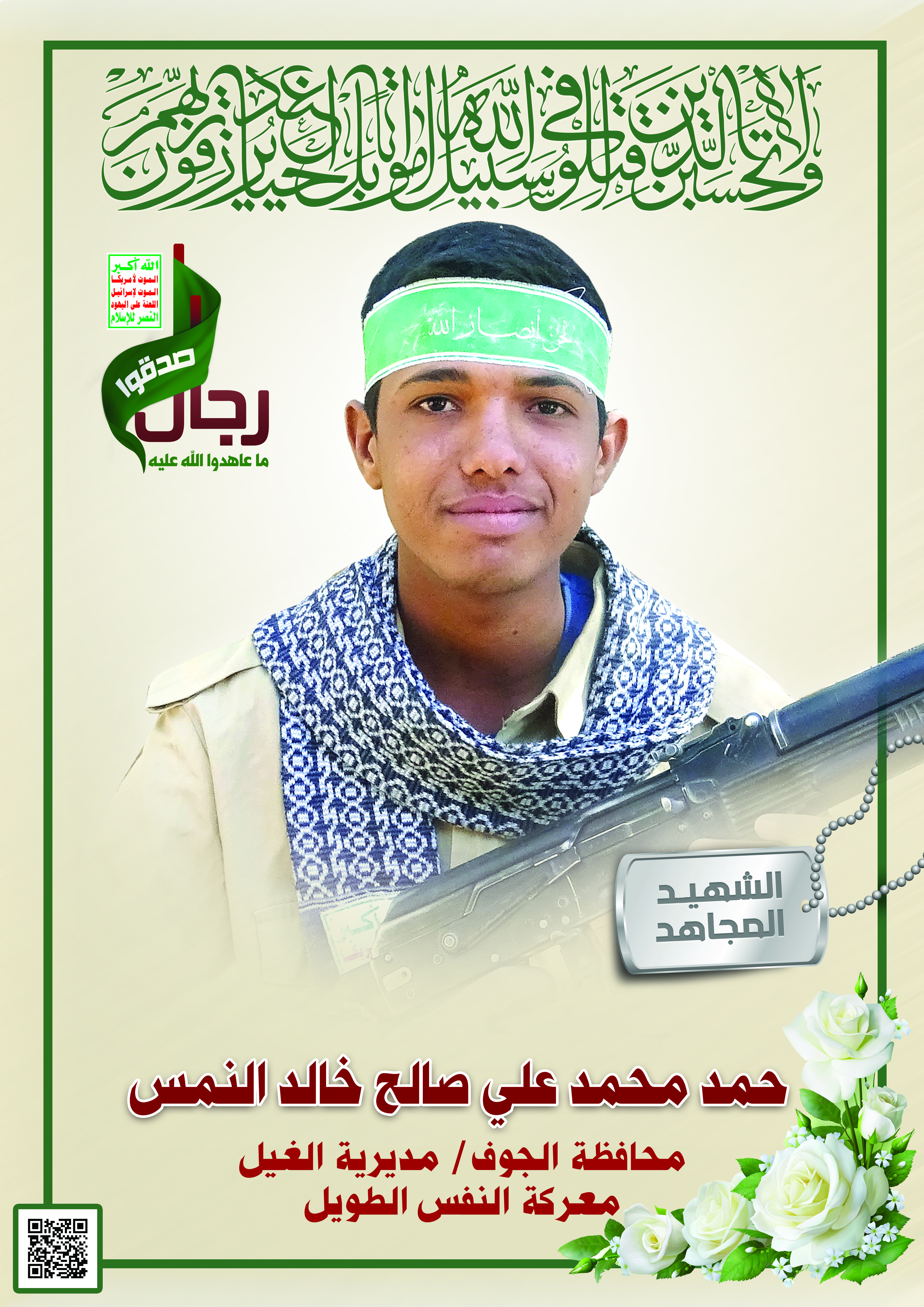 Actor حمد محمد علي صالح خالد النمس الشريف Filmography الشهيد المجاهد: حمد محمد علي صالح خالد النمس الشريف – أبو محمد المحافظة: الجوف المديرية: الغيل – ال النمس معركة النفس الطويل رقم الحافظة: 140017