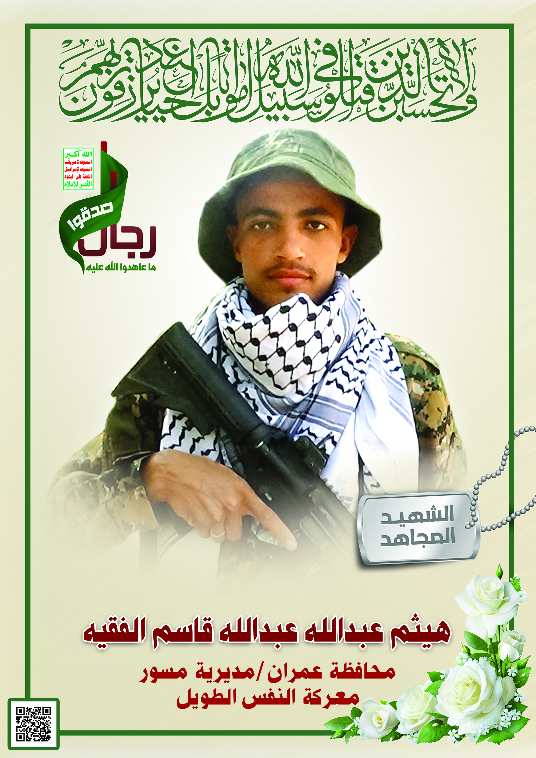 Actor هيثم عبدالله عبدالله محمد قاسم الفقيه Filmography الشهيد المجاهد: هيثم عبدالله عبدالله محمد قاسم الفقيه – المحافظة: عمران المديرية: مسور – معركة النفس الطويل رقم الحافظة: 140348