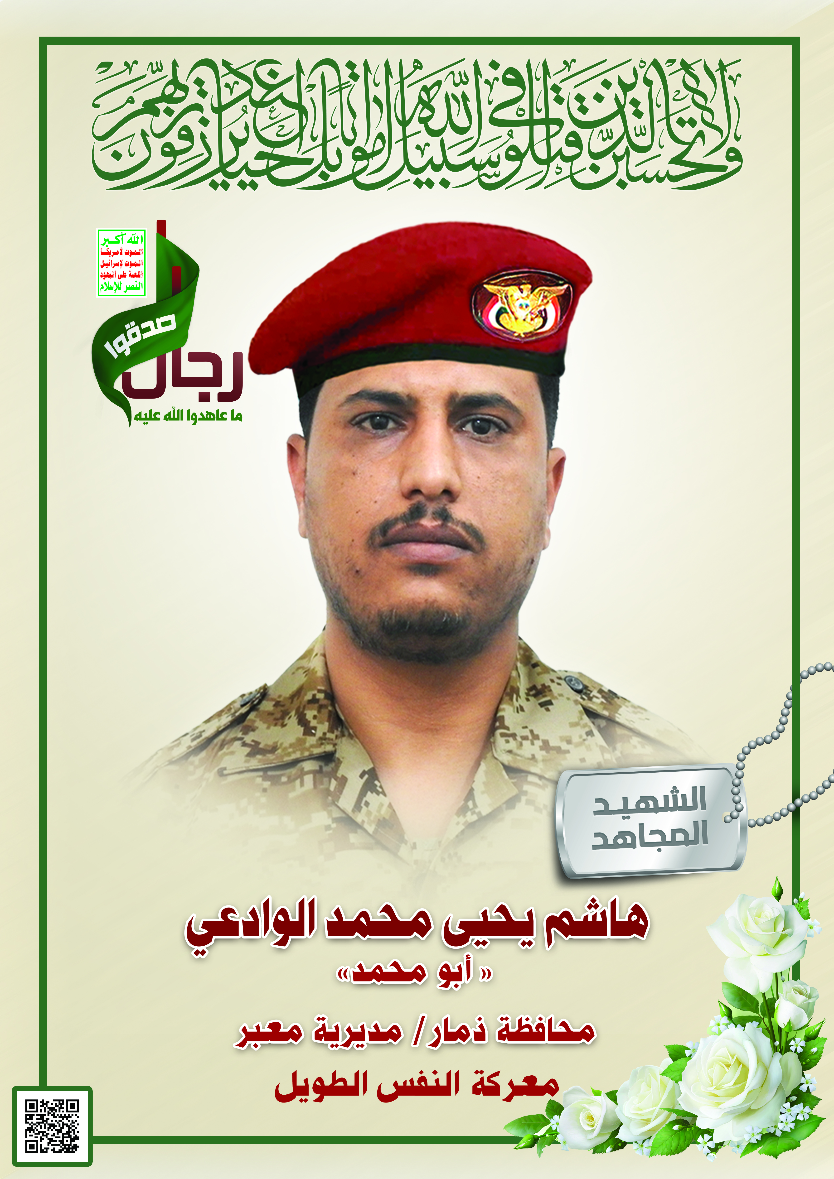 Actor هاشم يحيى محمد الوادعي Filmography الشهيد المجاهد: هاشم يحيى محمد الوادعي – أبو محمد المحافظة: ذمار المديرية: معبر معركة النفس الطويل رقم الحافظة: 140389