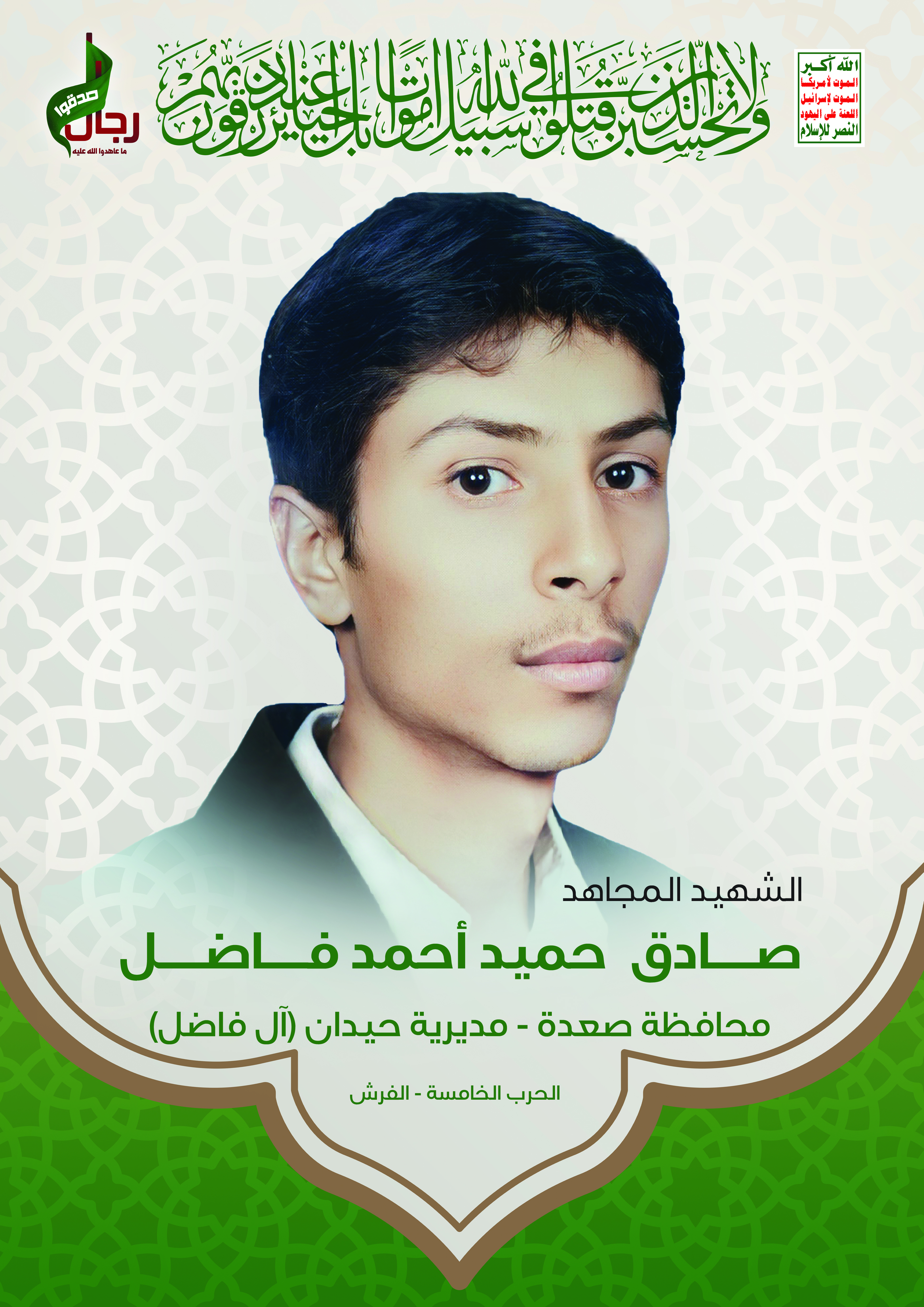 Actor صادق حميد أحمد فاضل Filmography الشهيد المجاهد: صادق حميد أحمد فاضل المحافظة: صعدة المديرية: حيدان – آل فاضل معركة النفس الطويل رقم الحافظة: 140396